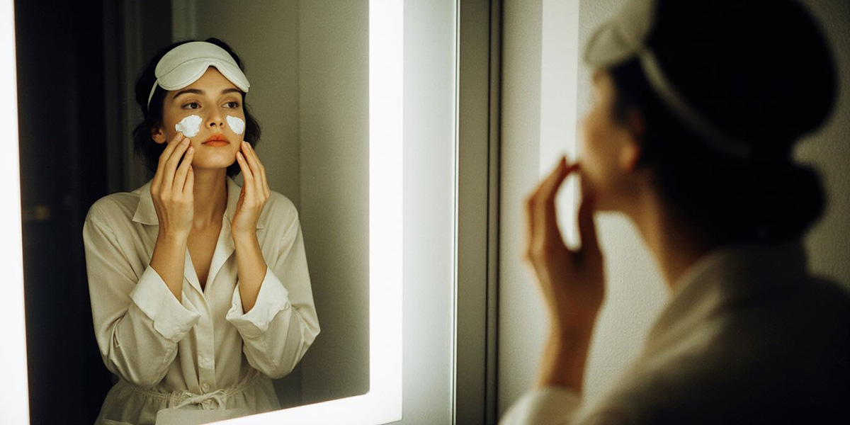 Чтобы избежать утренней отёчности и дать формулам поработать полноценно, наносите уход минимум за час до сна. Кремов и масок нужно меньше, чем кажется: избыточный слой не усилит эффект, а создаст риск липкости и «подушки на лице». Через 15 минут после нанесения можно промокнуть излишки салфеткой — на эффективность это не повлияет, но повысит комфорт.