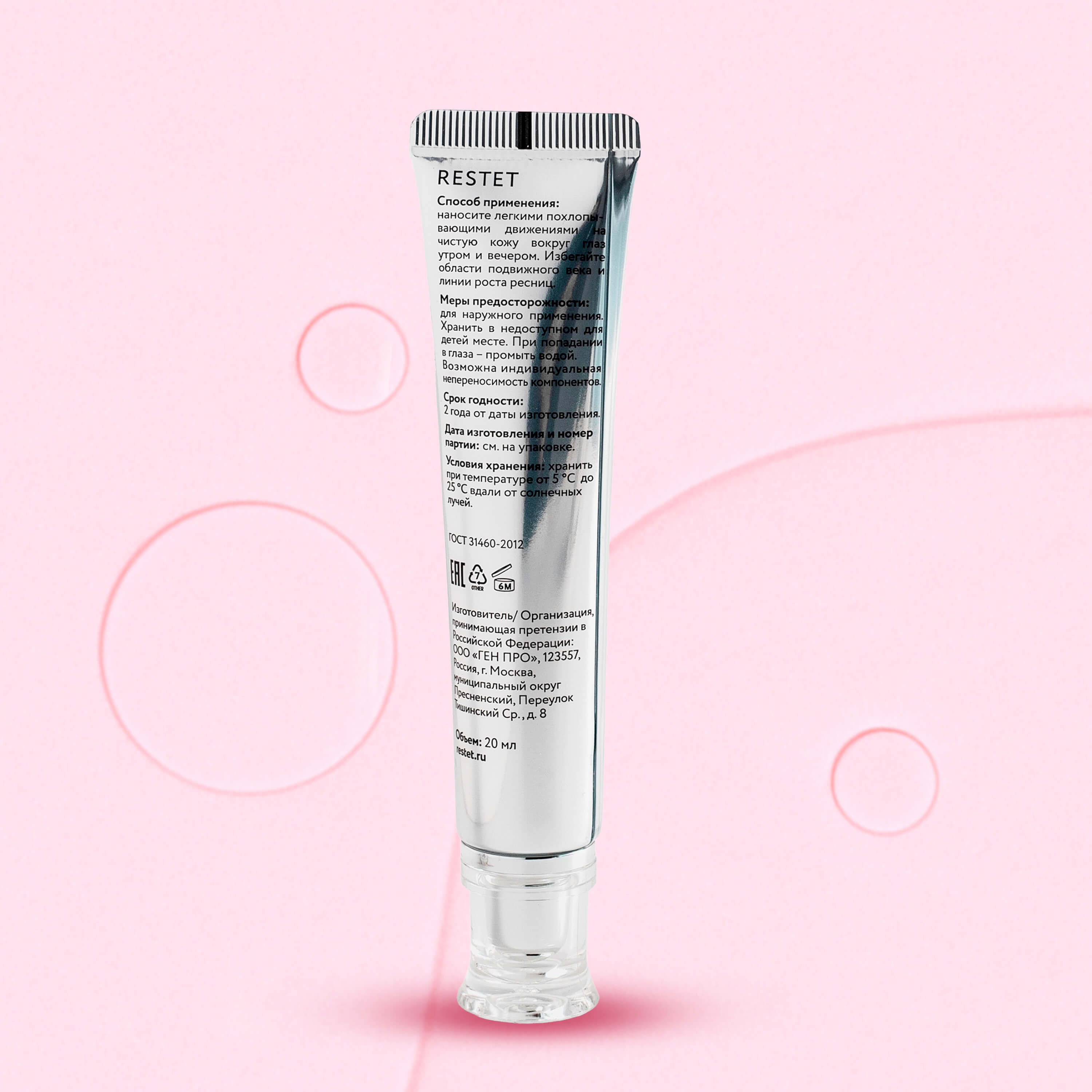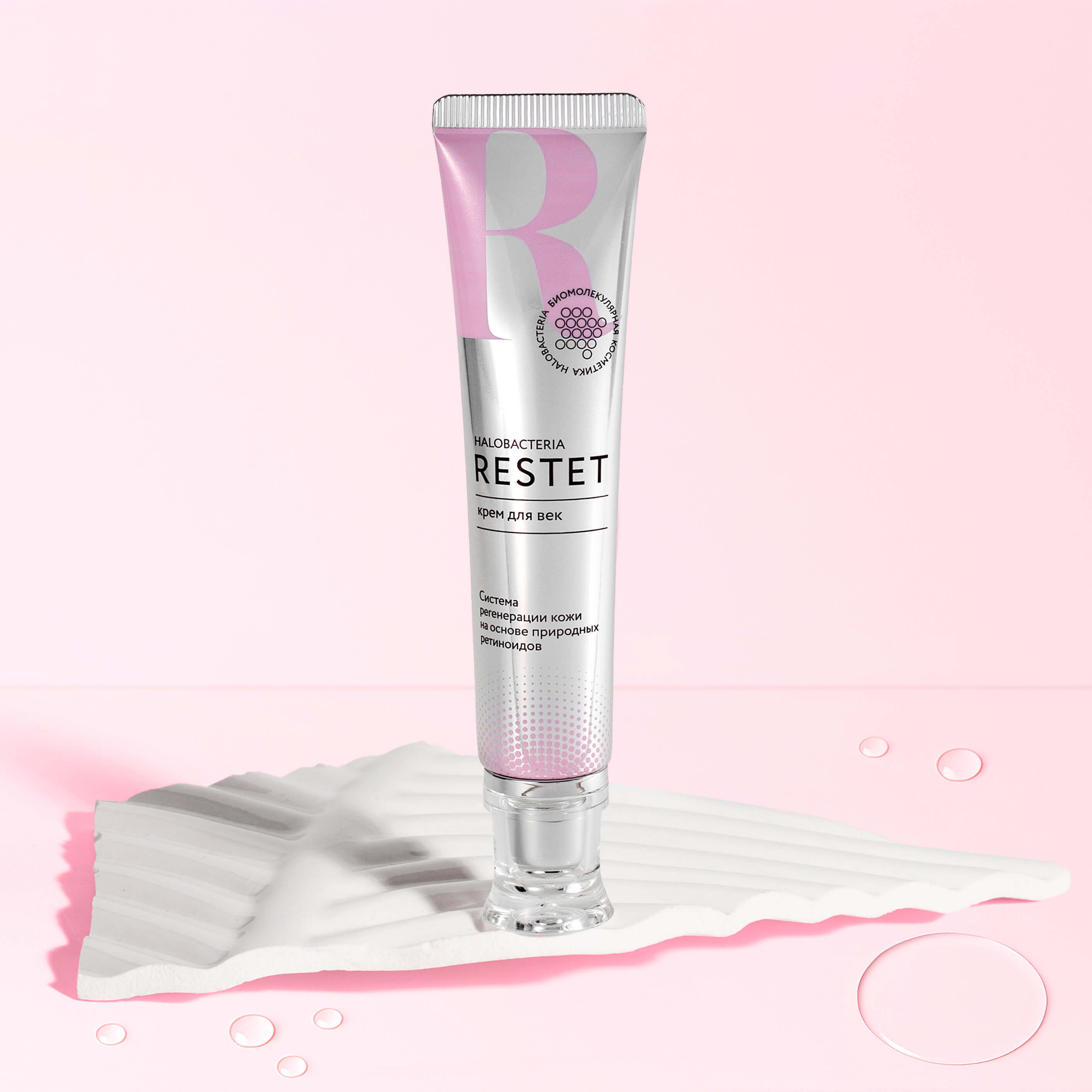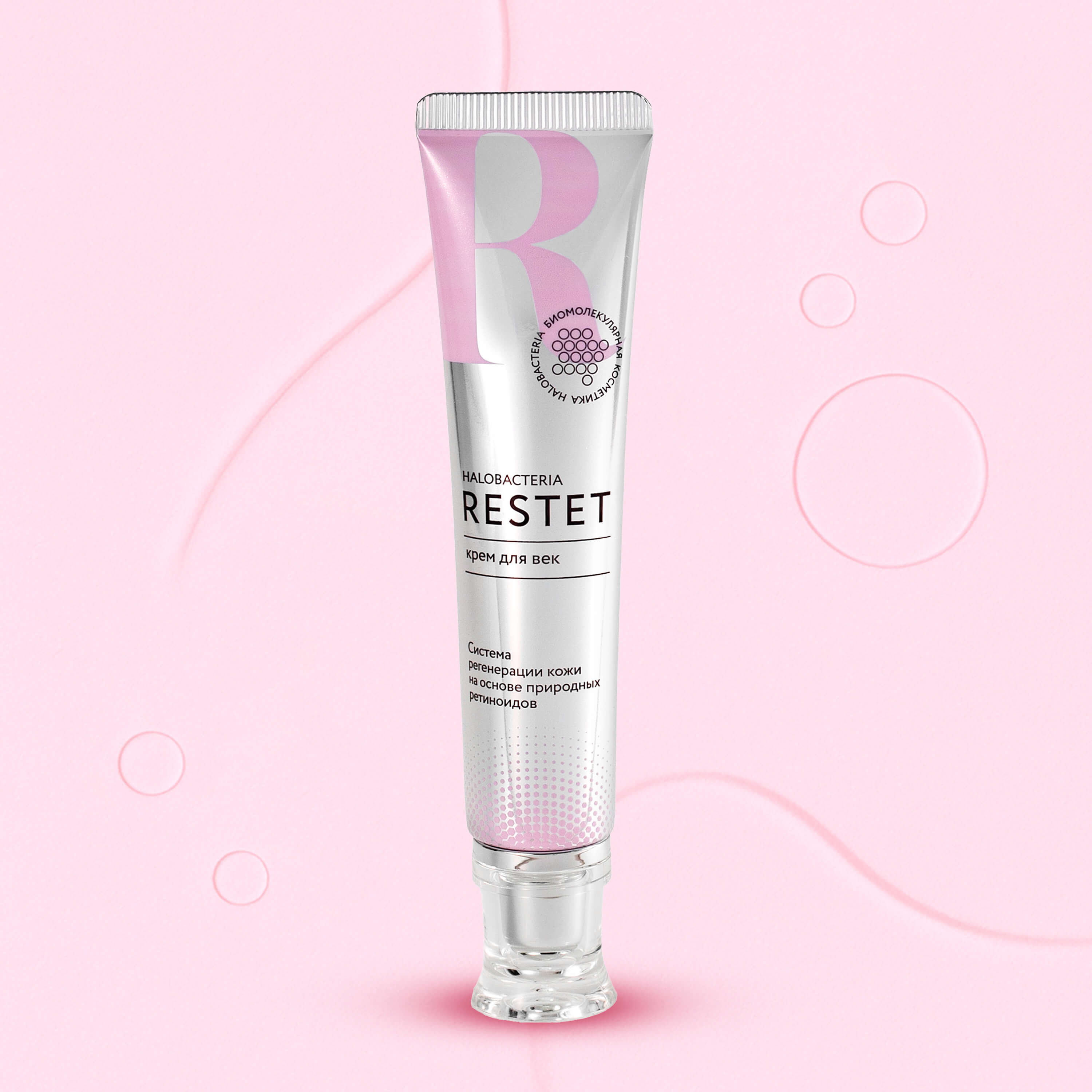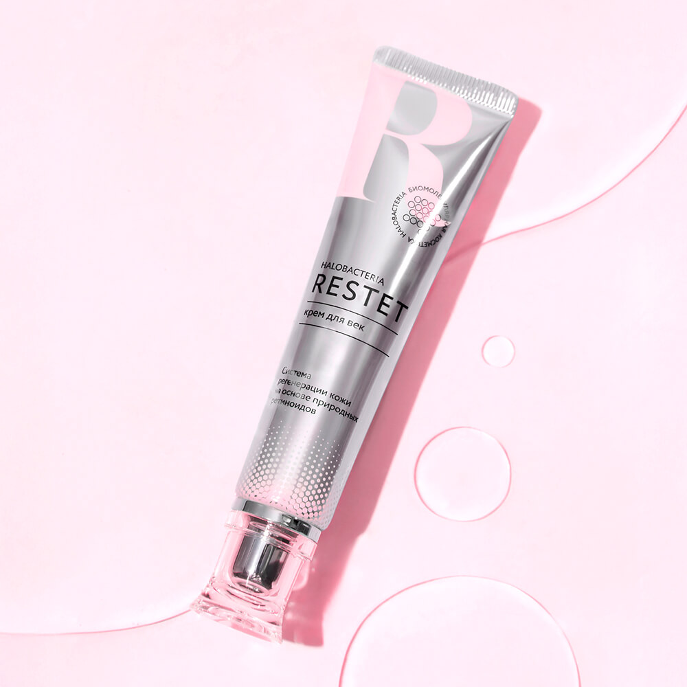 Антивозрастной крем для век Restet разработан специально для тонкой и чувствительной кожи вокруг глаз, нуждающейся в деликатном, но эффективном уходе. Биомолекулярная формула с экстрактом Halobacterium salinarum из микроорганизмов Мёртвого моря насыщает кожу минералами и витаминами, помогает уменьшить отёки, тёмные круги и первые признаки старения. Средство подходит для всех типов кожи и обеспечивает заметное разглаживание морщин, улучшая эластичность и плотность. Благодаря сочетанию гиалуроновой кислоты, пептида и кофеина крем помогает поддерживать свежий, отдохнувший вид, устраняя следы усталости. Текстура лёгкая, быстро впитывается, не оставляет жирного блеска и идеально подходит под макияж, не скатывается.
